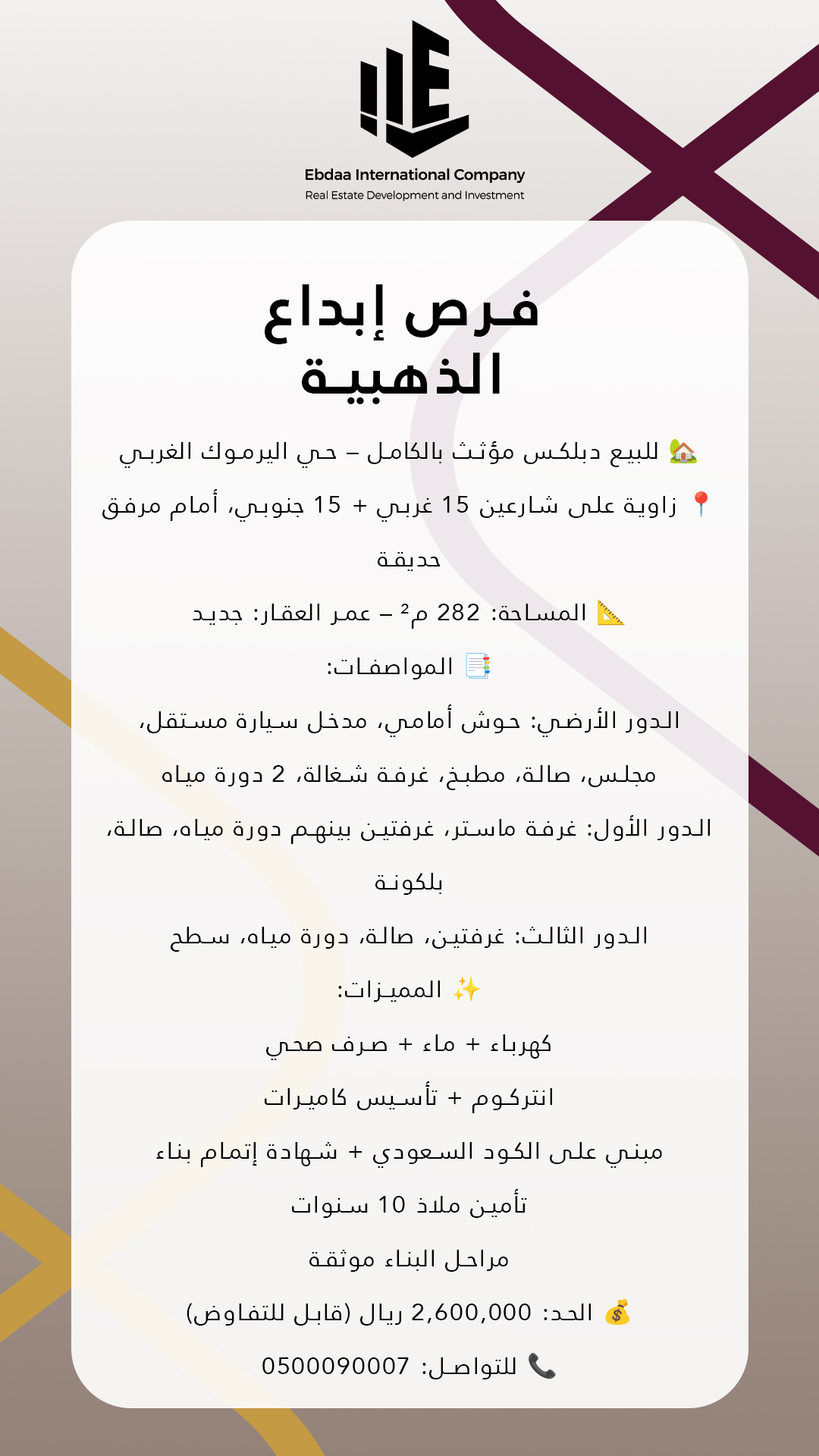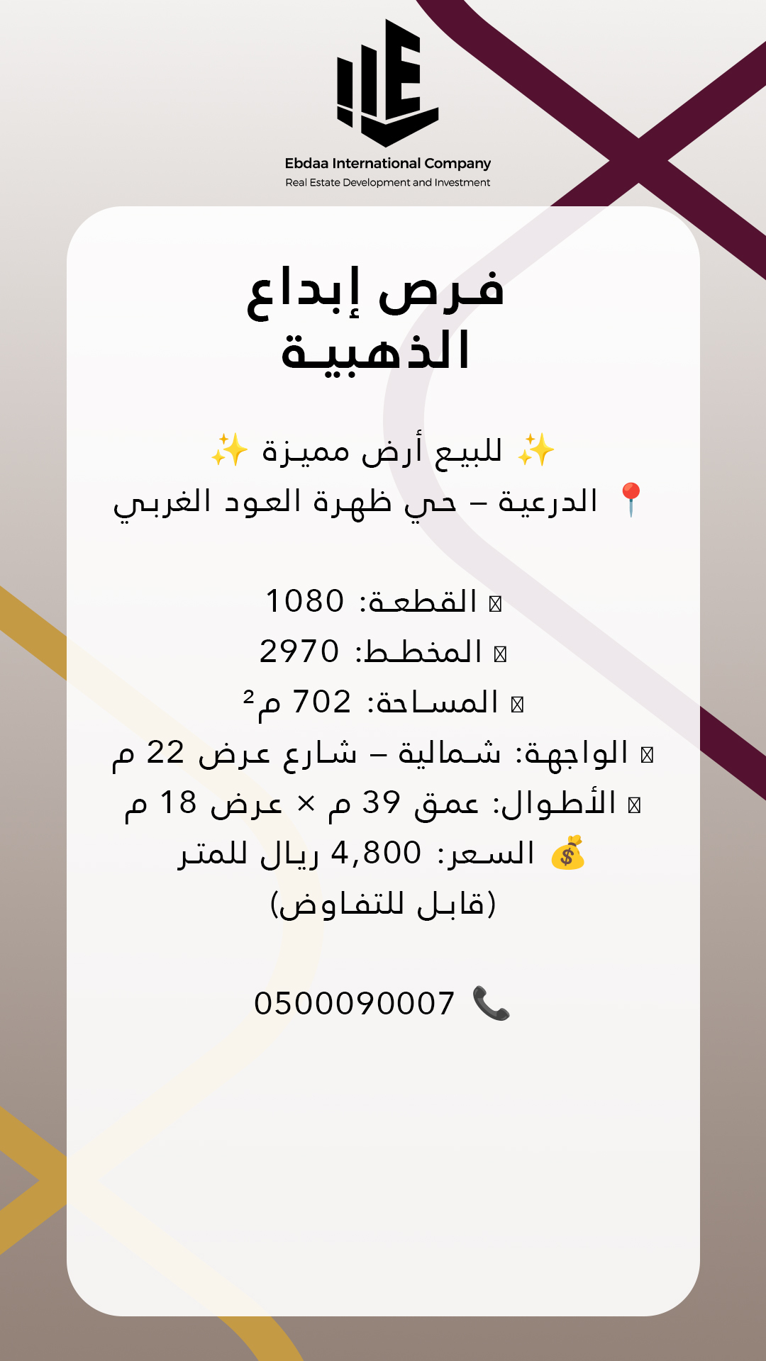 للمستثمرين الأذكياء: هي أصل نادر يضمن لك عائداً استثمارياً مرتفعاً ونمواً في رأس المال، بفضل موقعه الحيوي وتطور المنطقة المستمر تماشياً مع رؤية 2030.